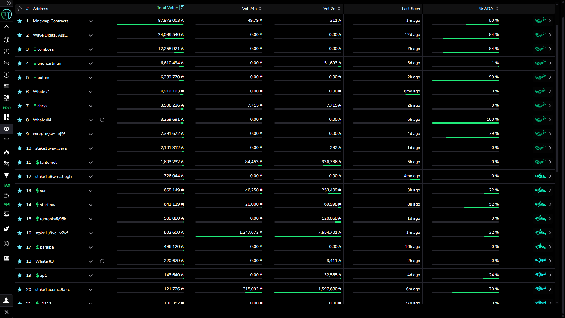 Track and manage multiple wallets of interest. Keep an eye on the most active traders, whales, and other degens in the ecosystem in one easily accessible place.